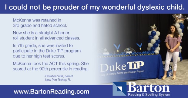 I decided to have McKenna tested for dyslexia and reached out to you for testing centers. We found someone to perform the test, and I prepared myself and McKenna as much as possible for the outcome. I was so worried that I was wrong about her having dyslexia and would have to start over. Yet she fit all the descriptions so perfectly, and it felt amazing to be able to put a name on this problem that I’d been trying for years to describe to all her teachers.