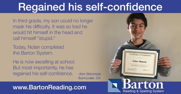 Today, Nolan completed the Barton Reading & Spelling System with Janis Garcia, a wonderful Certified Barton Tutor. He proudly received his certificate signed by Susan Barton.