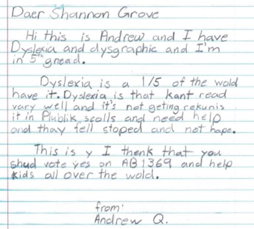 He first wrote his letter of support for California’s dyslexia bill, AB1369, by hand. Then he dictated it into the computer.