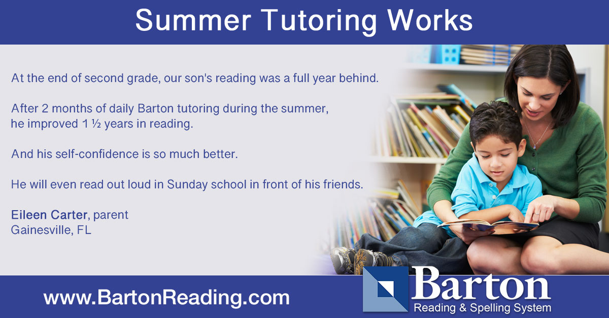 There are times in life when I feel I’m not the smartest kid in my class because I can’t read like the other kids. It is like, I am two grades behind. Sometimes I give up and cry but my family, teachers, and Barton tutor help me keep going.