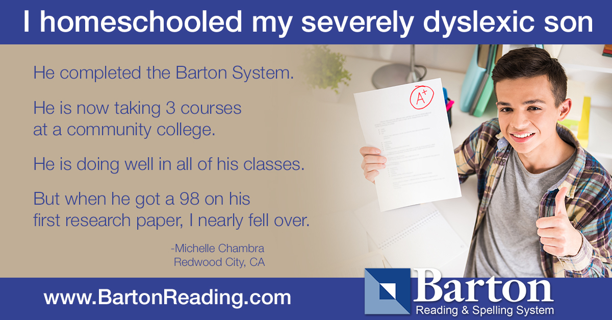 My 17 year old son, David, is dyslexic. He was diagnosed when he was 8, and he has had lots of tutoring at Sylvan and from retired Reading Specialists over the years, which has helped a little bit.