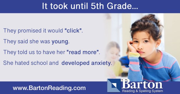 We decided to homeschool, which our daughter had been begging us to do since first grade, and we began using the Barton System as our language arts curriculum.